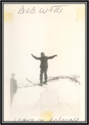 Bob Watts of the 125th Field Artillery (US Army) skiing in Italy